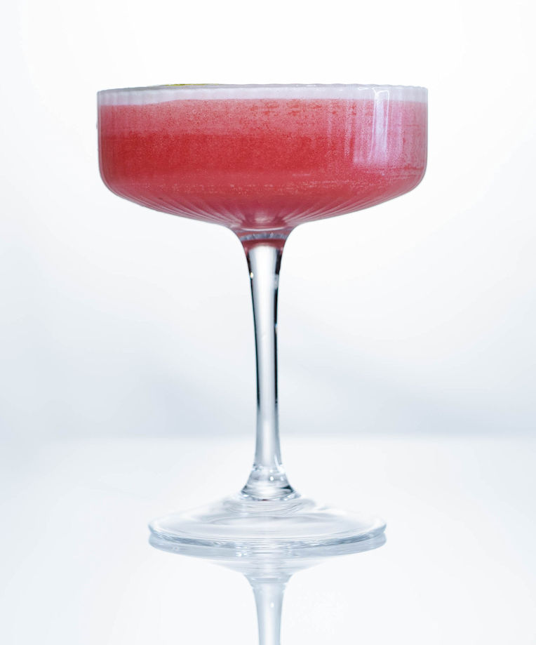 Blend all ingredients with ice until smooth, then pour into a coupe or hurricane glass. Garnish with a fresh strawberry or a twist of lime for an elegant finishing touch. It’s fruity, refreshing and just indulgent enough to feel special.