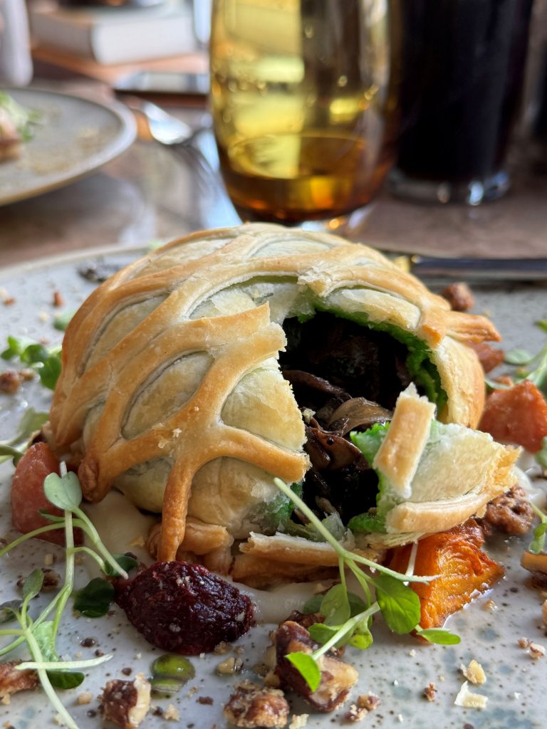 Images here from our incredible lunch at Burleigh Court. The one on the right is the delicious vegan Wellington, the one on the left is from their kitchen garden.