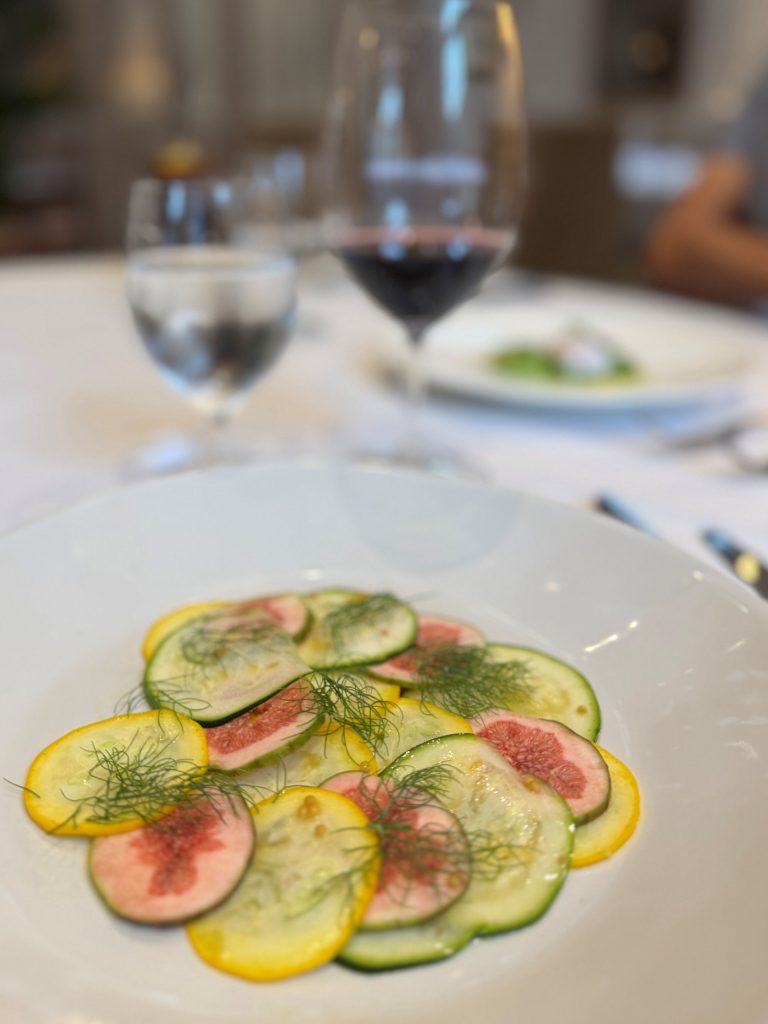 The food, of course, was the true highlight. Having pre-advised dietary requirements, we were presented with an exceptional vegan and vegetarian menu that was both imaginative and generous. Freshly baked sourdough and focaccia, served with excellent olive oil, opened the meal, followed by elegant amuse-bouche tartlets that offered a bright, flavourful introduction.