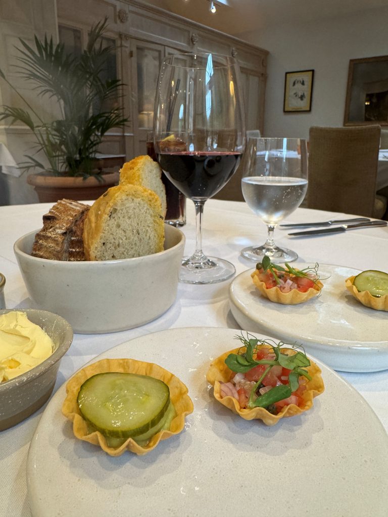 Although already familiar with the manor through daytime visits and events, dinner in the restaurant felt like a long-awaited occasion. From the moment we arrived, the welcome from Restaurant Manager Conor set a relaxed and reassuring tone. Rather than the formality sometimes associated with fine dining, the atmosphere was warm, lively and comfortable. The soft hum of conversation, thoughtful acoustics and natural flow of the room made it easy to settle in and enjoy the evening without restraint.