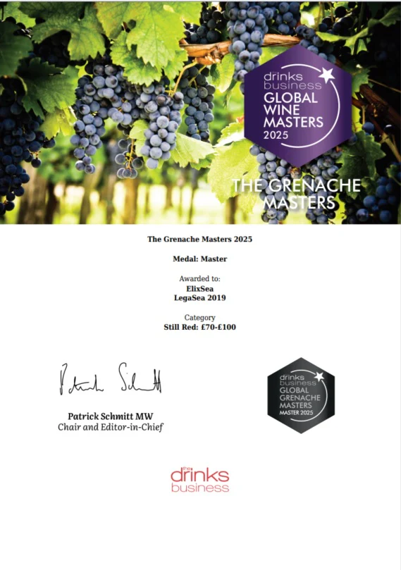 ElixSea’s LegaSea 2019 — a remarkable red wine born in Priorat and aged beneath the Mediterranean Sea, has achieved the Master Medal, the highest possible honour, at the Global Grenache Masters 2025 organised by The Drinks Business.
